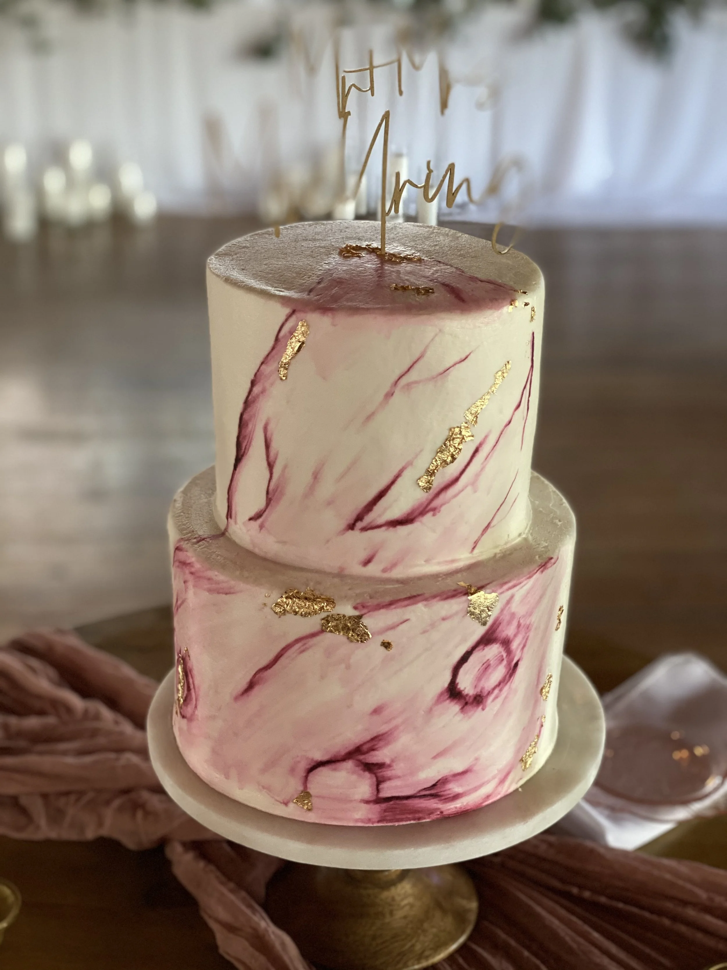 We make a variety of cakes for every type of wedding! From simplistic stucco to extravagant scrolls and even detailed grooms cakes, we are dedicated to making your dream cake a reality.